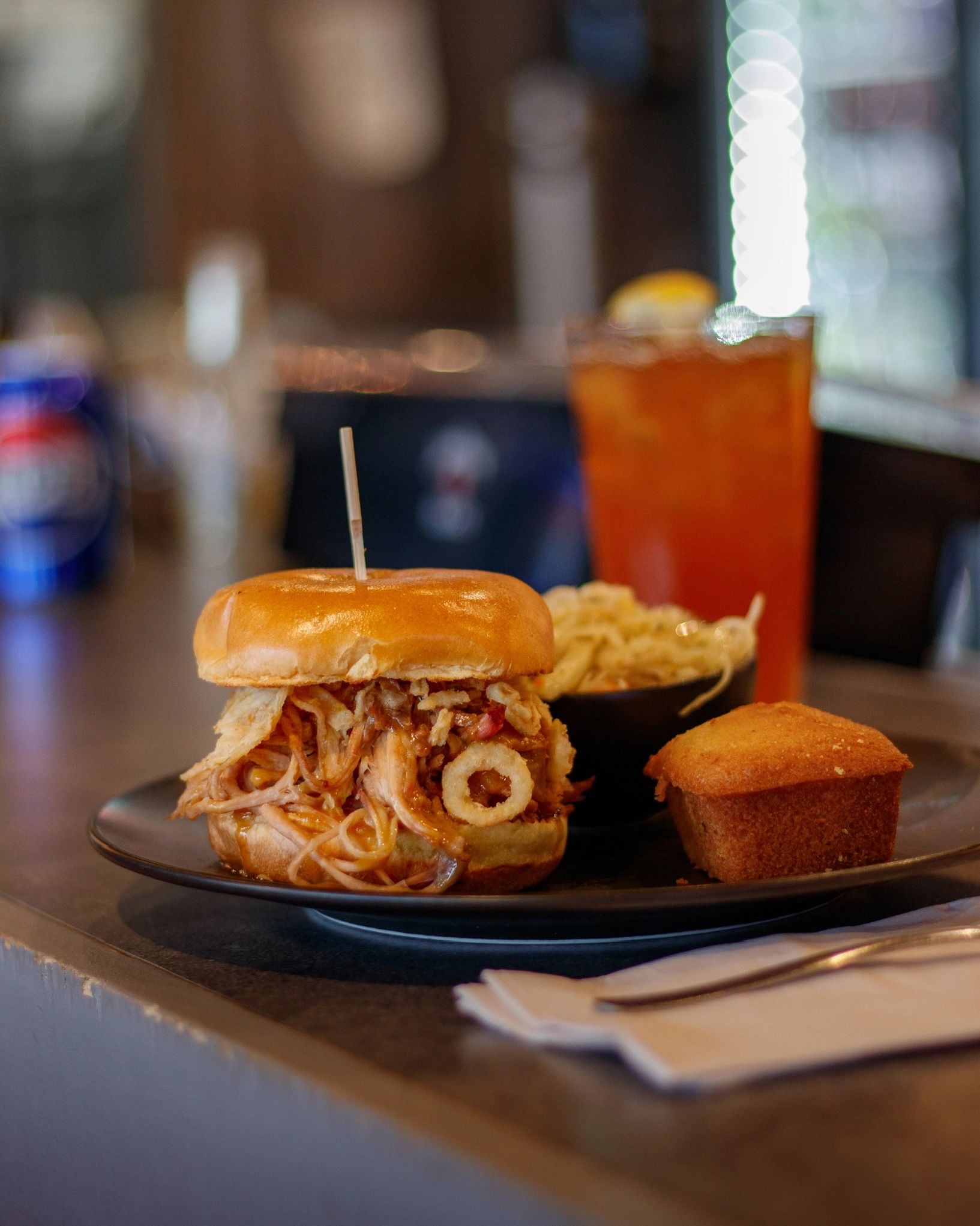 Ontario raised pork shoulder, hand-pulled, seasoned in our dry rub and drizzled with Original Barbecue Sauce. Served on a brioche bun